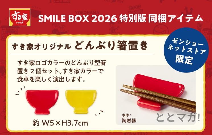 公式通販「ゼンショーネットストア」限定の特別版(税込4,000円)は、店頭版に加えてどんぶり箸置き(2個セット、ロゴカラーでスプーンも置ける)と追加500円クーポン(合計4,000円分)がオマケされ、より豪華です。